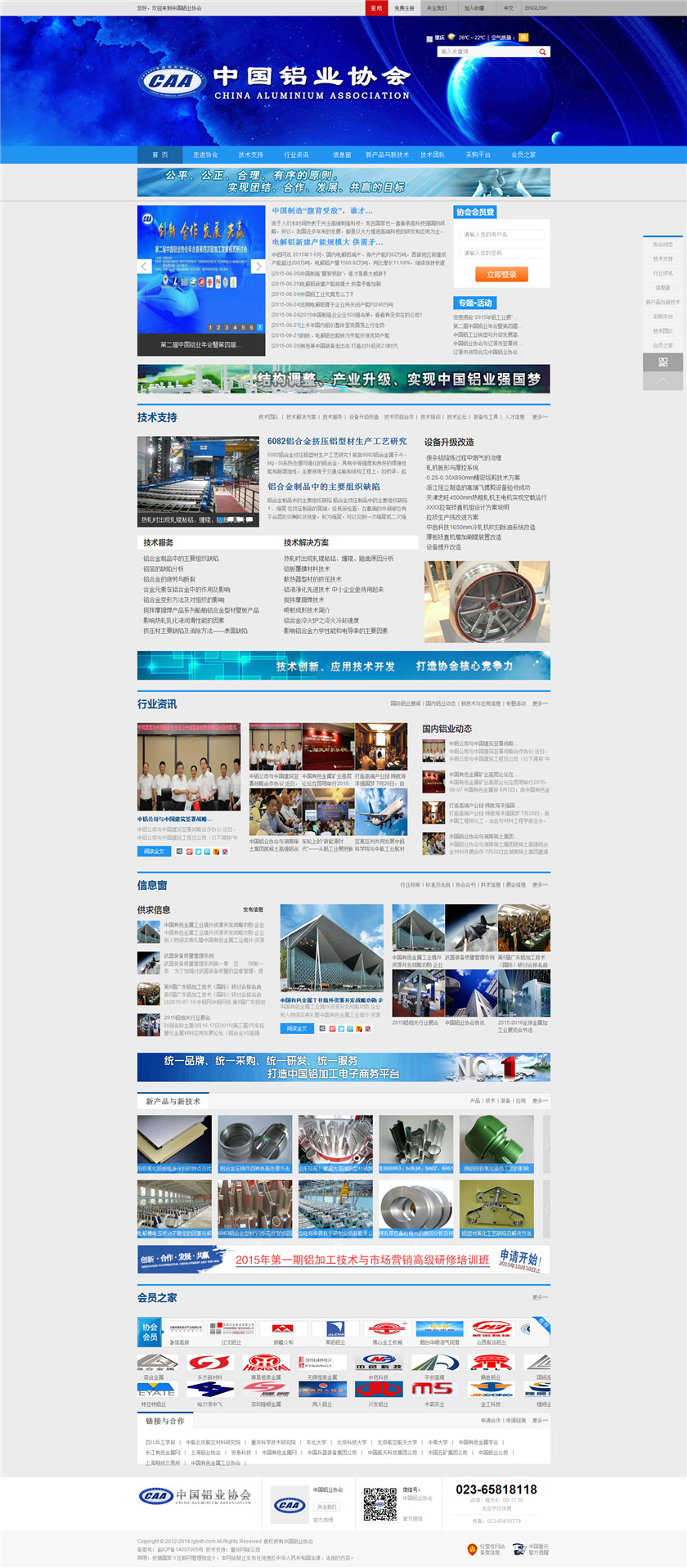 Project Description 中国铝业协会是由中国国内主要从事铝合金铸造、板、带、箔、管、棒、型材、锻件等企业组成的行业协会组织,协会由国内具有一定规模和影响力的企业发起,已有三百多家会员企业,目前还有很多企业踊跃希望加入,协会现有会员企业年销售额1000多亿元人民币,协会会员企业分布在国内华东、华南、西南、环渤海、东北、胶东半岛等中国经济活跃地区;产品涵盖航空航天、兵器装... Official website address 西安http://www.caa2014.com I want to share