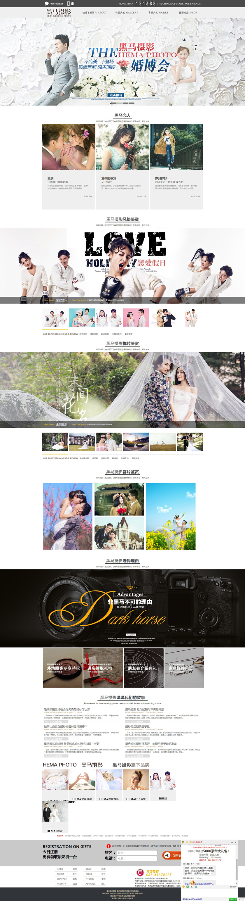 Project Description 黑马摄影,把每一对新人幸福梦想当成毕生的追求和责任,带着一对对新人的支持和厚爱,不断创新摄影风格,完善服务理念。无论从服务,作品,体验,我们虽然不能说100%没有缺陷,但我们有100%追求完美的心 Official website address 西安http://www.hemaphoto.cn I want to share